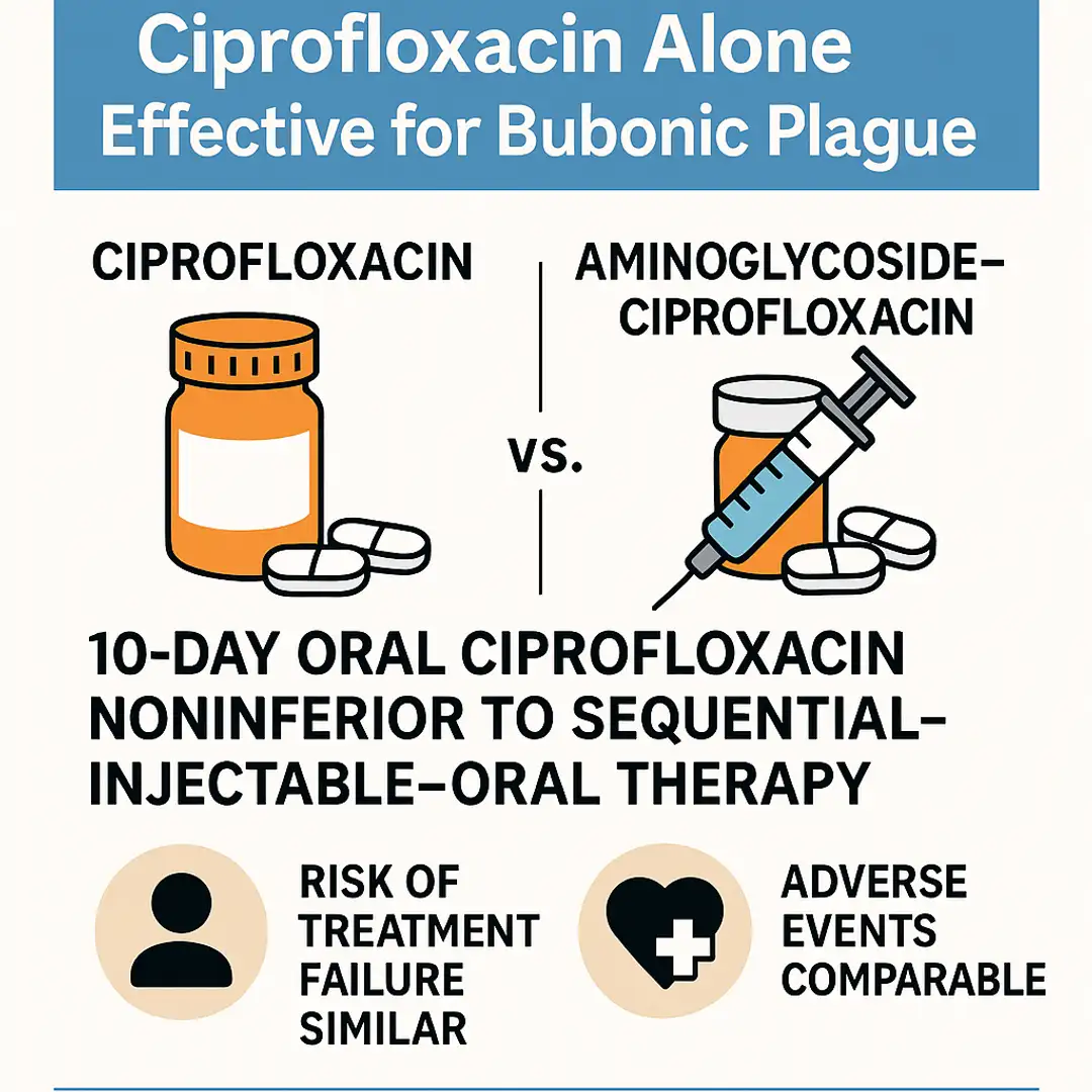 - Randremanana RV, Raberahona M, Bourner J, Rajerison M, Edwards T, Randriamparany R, Razafindratsinana TF, Razananaivo LH, Zadonirina G, Mayouya-Gamana T, Salam APA, Mangahasimbola RT, Andrianaivoarimanana V, Pesonel E, Rakotoarivelo RA, Randria MJD, Horby P, Olliaro P; IMASOY Study Group. Ciprofloxacin versus Aminoglycoside–Ciprofloxacin for Bubonic Plague. N Engl J Med. 2025 Aug 7;393(6):544-555. doi:10.1056/NEJMoa2413772.